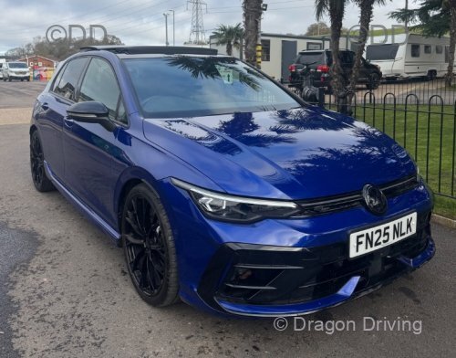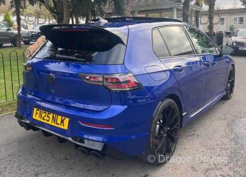 2025 Volkswagen Golf R Black Ed Tsi 4motion SA, petrol, blue. Car is fully loaded, pan roof, dynamic chassis, heads up display, upgraded wheels, winter pack.