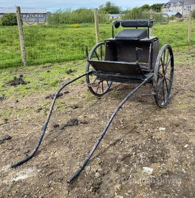 Gig wheel 2 wheel cart to fit 13.3hh to 14.2hh. In need of a little renovation, but very usable, very comfy ride.