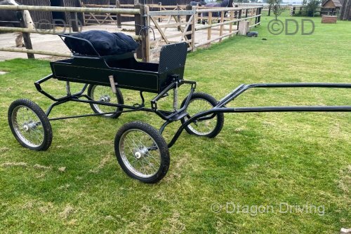 Lightweight 4 wheel training carriage, to suit 13hh-14hh. Chrome wheels, blow up tyres.