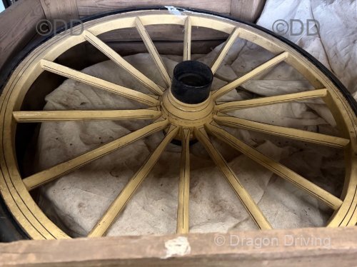 Fenix Flyer carriage, older style with wooden wheels. Lovely condition. A real smart little carriage.