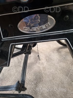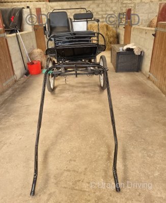 It has been used with a 15.2hh Gypsy cob and is an ideal fit for that stamp of horse, with plenty of room in the shafts for a heavier build. It is fitted with pneumatic tyres on alloy wheels, providing a smooth ride for road work or tracks.