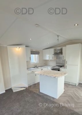 Standard features: UPVC double glazed windows and door/s, gas combi central heating, steel pantile roof, PVC cladding, lagged pipes, exterior light. Feature fireplace, dining table and chairs, gas oven & hob, stainless steel cooker hood, built in 70/30 fridge freezer. Domestic interior doors, foldout bed to lounge sofa, vaulted ceiling throughout, thermostatic shower mixer.