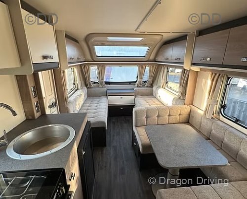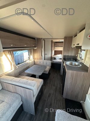 Vinyl flooring throughout, removable carpets included. MRO 1690, MTPLM 1870. Excellent family caravan.