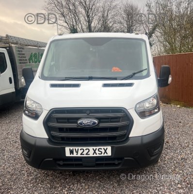Ford Transit tipper 2023. 9k miles, like brand new. All colour coded white & Bi Xenon headlights. All side markings & flashes throughout body. Front grille flashes. Custom made Brit Tipp toolboxes both sides with aluminium rales.