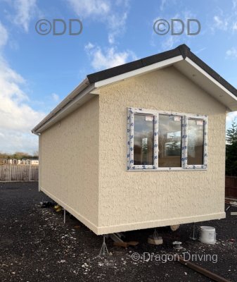 New 2026 dayroom / 2 bedroom rough chalet for sale, 22 x 10. Outside down lights, centre peak fully finished, chrome sockets and switches, electric shower.
