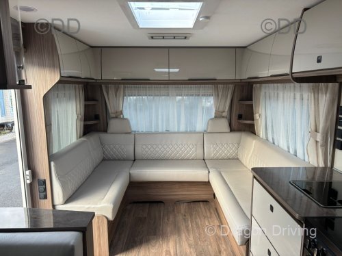 LMC 650 BRILLIANT VIP 2024 (2025 spec). This caravan is in showroom condition both inside and out, with French bed, large leather horseshoe seating and separate shower, toilet and air con. It can be heated three ways.