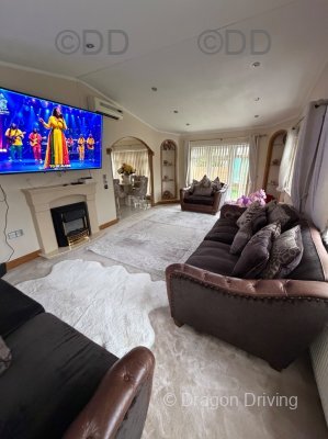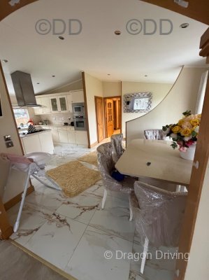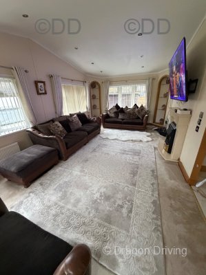 Feature fireplace, dining table and chairs, gas oven & hob, stainless steel cooker hood, built in 70/30 fridge freezer. Domestic interior doors, foldout bed to lounge sofa, vaulted ceiling throughout, thermostatic shower mixer.
