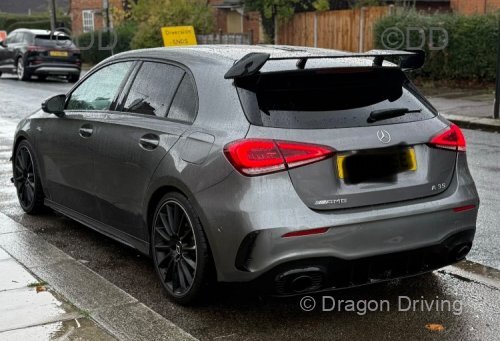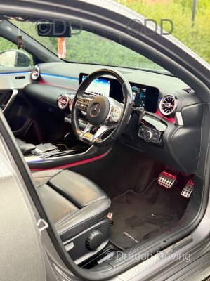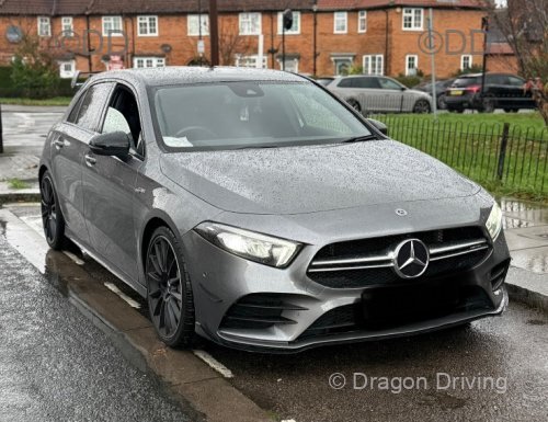 71 reg Mercedes A Class AMG Line, automatic, petrol hybrid, 4 door saloon, in grey metallic.