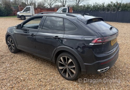 24 new shape of Volkswagen Taigo R line model. Sports seats, navigation, digital clocks, automatic pedal shift gearbox, big wheels.