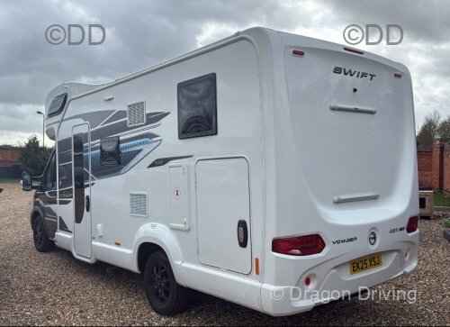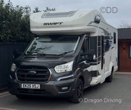 2025 Ford Transit Swift Voyager camper, six berth. Overhead bed, double dinette with safety belts, fixed bed in the back.