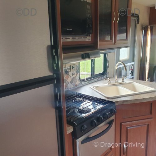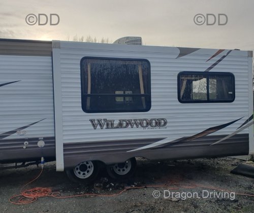 2015 Forest River Wildwood. Double bed, shower, hot & cold water tanks, flushing toilet and microwave.