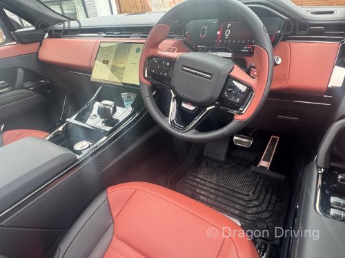 Range Rover Sport SV, best one on the road. So many extras, 650bhp. Sliding glass roof, the big V2 ton wheels. New gunmetal grey wood, full red inside leather seats, dash and steering wheel.