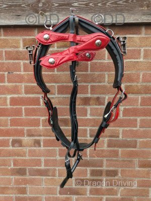 New quick hitch harness, pony size. Red and black harness made by KRIS.