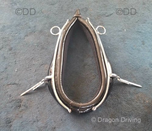 Black patent driving collar with chrome aims, size 19inch x 8 inch. Made by Huskisson of Walsall.