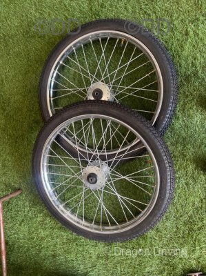 Solid no rot, rolls like a pram, rubber channel wheels, very good dray.