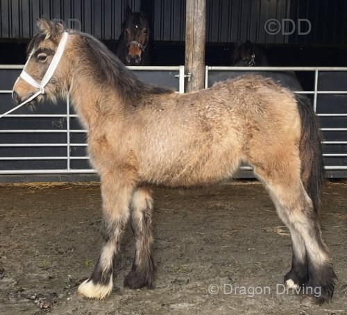 Stunning lemon and white coming 3 years old in June filly, standing nearly 14.3hh, will definitely make 15hh. Nice and short in body and has been rugged and stabled all of winter so far, has been shown in hand last summer and always in the ribbons. Has been mouthed up, long reined in both open bridle and full harness, all groundwork done and she hasn't battered an eye at anything.
