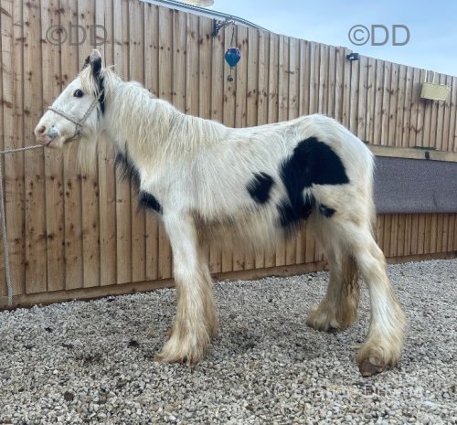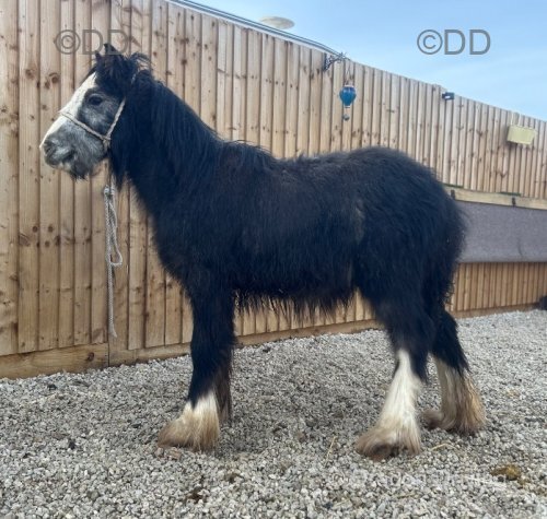 13.1hh 9yr old ride and drive cob mare. Masses of mane, tail and feather and the best moustache you could get. Super smart mover and is very straight and correct. Bonnie by name and Bonnie by looks and nature. The sweetest mare you could wish to meet. Excellent in the stable, no vices, can muck out round her or tie on the yard with no problems.