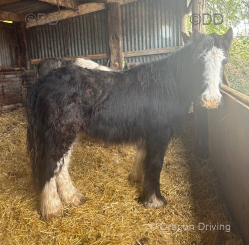 3 year old gelding ride and drive. By a horse called Blue WKD and out of a 14.2hh heavy cob mare. Good to box, clip, shoe and in traffic.