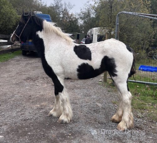 Stunning looking piebald cob filly 2 years old make 14.2hh. Lovely temperament, good to handle.
