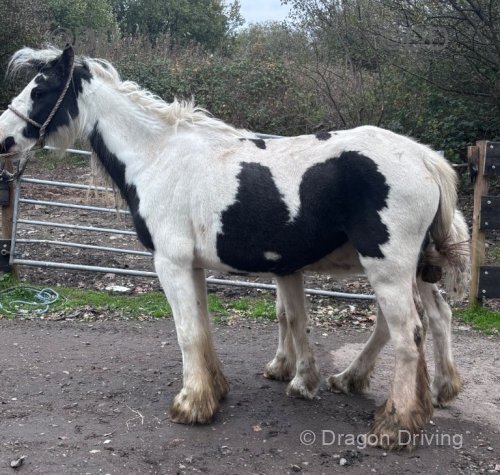 For sale Daisy 14.2/3hh very heavy 15 year old black and white mare. She has lived out all her life has had minimal handling but is very sensible to handle, not nasty.