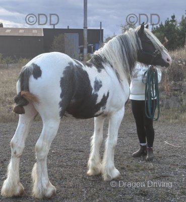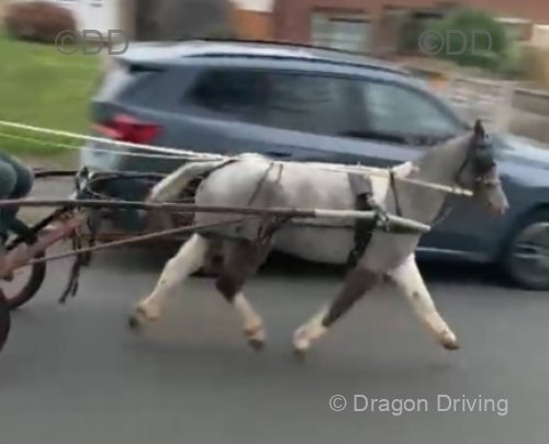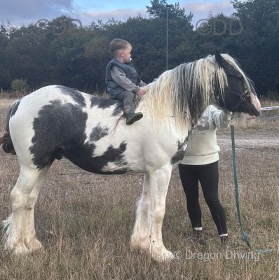 Very game colt, perfect in the heaviest of traffic, my wife and kids drive him out on main roads. Will only get better with age. I've owned him for a long while just got 6 stallions here and not got time to use them all. He's a lovely cob, like a baby.