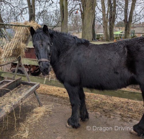 13 year old (this year), 13.2hh, Welsh x Hackney gelding. He drives in a single, pair and team and has seen obstacles and cones.