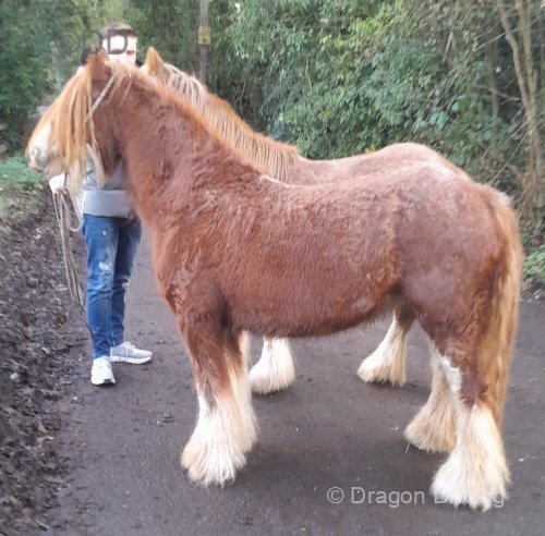 Super heavy and hairy, all the cob qualities, apple bum, feather from the knee, short back. Real calm natured ideal horse for someone.