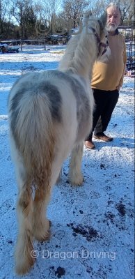 12.2hh, 9 year old ride and drive mare. The photos do her no justice. She is broken to ride and drive, rides under full saddle and English bridle, but has done more riding than driving lately.
