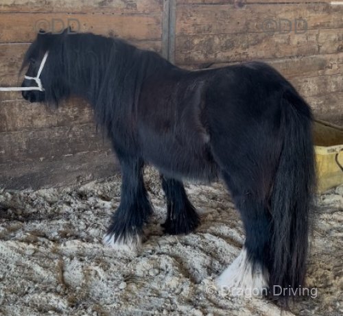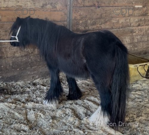 4 year old 12.2hh solid little black cob mare. Has driven lightly last year.