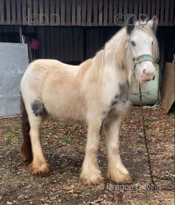 Blue and white gelding, ride and drive. The photos do him absolutely no justice, please ask for videos. 3 years old, to definitely finish at 14hh. Standing at 12.3hh/13hh now.