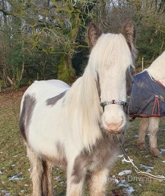 He comes with 3 harnesses and a cart and all he owns. He loves driving, loves to be pampered, is great in a herd and will live in or out. He is stabled at the minute.