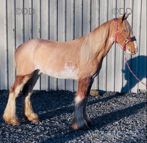 She's absolutely stunning with buckets of hair and a tail that drags behind her on the floor. Recently broken to ride and drive, soft mouthed, perfect in traffic, stands all day, good at junctions. Drives in a full britchen set, rides in open bridle under English saddle. Very polite ground manners too!