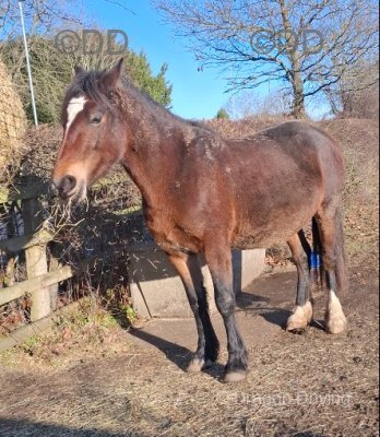 Ideal future horse for someone. Has real nice strong movement too. Turns out on her own or in company. Photos taken today, 21/02. She's good for the farrier, and is also wormed up to date. Currently standing about 13/13.1hh.