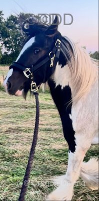 12hh black and white 4 year old ride and drive filly. Absolute doll of a filly, tiny head and ears, perfect to catch, and load. No vices at all, good with farrier, wormed up to date too. She's a pleasure to have on the yard, stables perfectly, turns out in company or alone respects the electric fencing.
