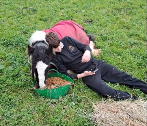 13hh piebald gelding, 3 years old. Excellent manners. Good to lead, catch and load. Good with the farrier. Happy to live in or out.