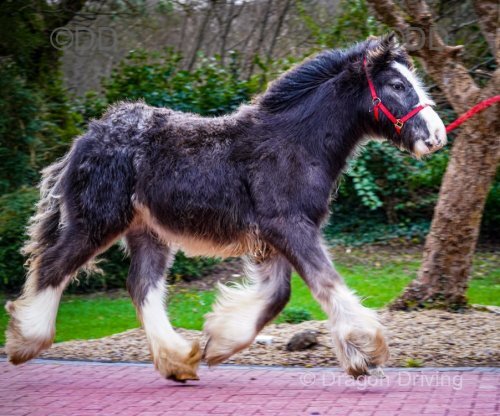 A June born filly foal, very good quality. Will end up grey. Half Draught and Connemara breeding.
