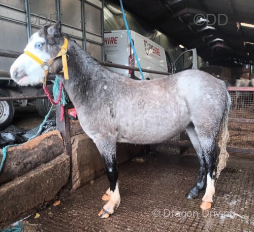 14.2hh 9 year old blue & white gelding. Barefoot, cheap to keep. Up to date with vaccinations, teeth, feet. Good to stand for the farrier, clip, etc...