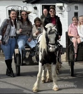 A baby could drive her, open to anyone coming to view/try her. Snaffle mouthed stands to be messed on with. Backs in to the shafts when asked stands untied. Listens to your voice to speed up slow down really easy mare. Used by the whole family loads of videos and pictures of her. Only selling her as too many horses. I've done the drives and fairs with her, no bother to tether, load, shoe, bath, clip, etc... Rides and jumps too hacks out alone or in company.