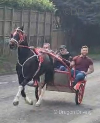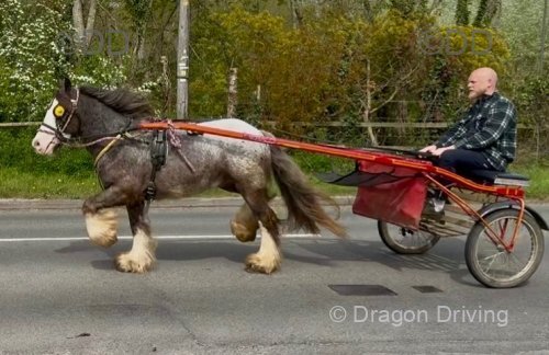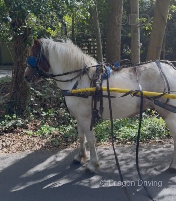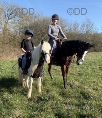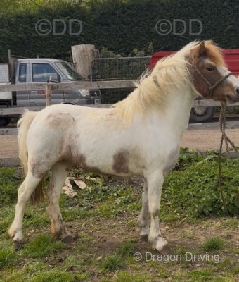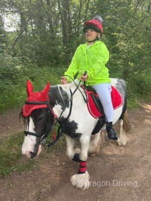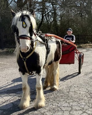 This pony is absolutely bombproof, perfect for a kid's pony. She's very quiet, ride and drive. She will stand all day, is very good with tractors, lorries, etc. You drive her with 1 hand and she will do 17-18mph all day. She is a very good sticking pony as well.
