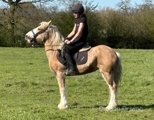 14hh ride & drive cob mare, 12 years old. I am selling her as a companion. She has done very light hacking but has not driven with me.
