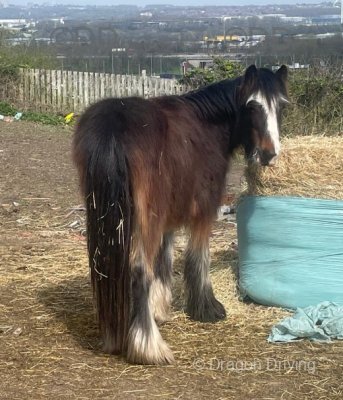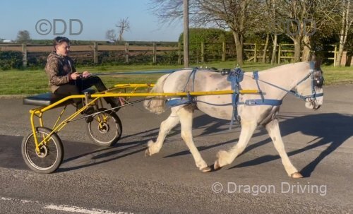 16hh, 6 year old ride & drive 3/4 bred mare. Marked like a map. We've done everything with her from Appleby to local drives. Will tie up all day outside the pub. She's a gassy mare who loves her work and can be keen when fit and in company so she needs someone who knows what they are doing, no novices or anyone who's only used to driving cobs.