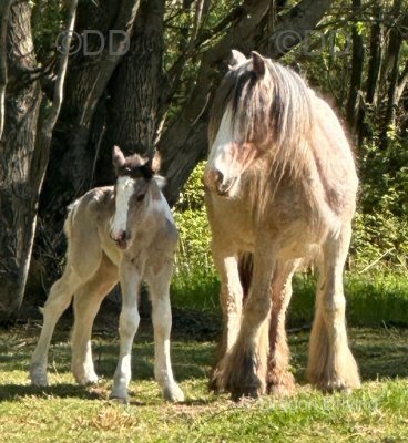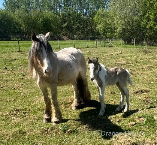 Heavy little mare 6 years old, 11.2hh with colt foal at foot. She is passported.