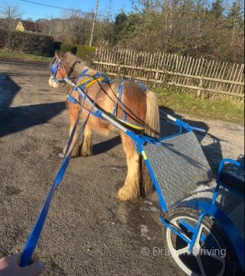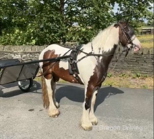 He's a very good cob to drive, goes in two or four wheel cart. Bombproof in heavy traffic, nothing bothers him, will go all day long, been on few big charity drives too. Also a nice horse to ride hack out, etc... Nice all rounder for someone, ready for the summer.