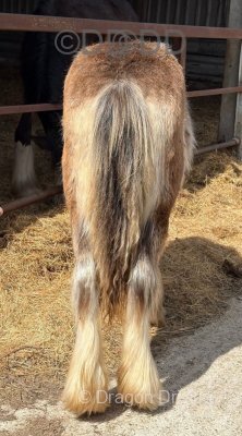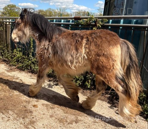 Lots of hair and feather. A sweet mare with plenty to offer. An ideal project or for someone wanting to continue her education. A great opportunity to get a quality pony before her price rises.