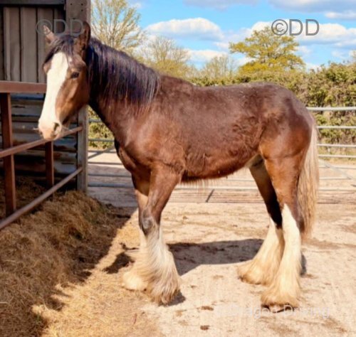 An opportunity to purchase a top-quality Shire, 2 year old filly. Bosworth Mills Sweet Candy. Sire - Woodhouse Magnificent. Dam - Bodafon Gift. Outstanding breeding, lines back to Metherington Upton Hamlet.