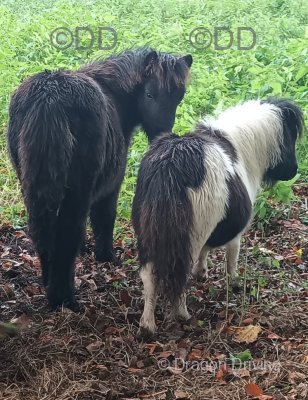 2024 red skewbald colt, miniature, very friendly future child best friend, Halstock /Kerswell lines, £650. 2021 black Standard mare, just had 1st foal weaned, HOYS quality, ready to go on to any sphere, easily broken in, extremely well handled all round, flashy, pretty, £1,250.