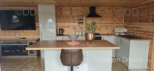 Feature fireplace, dining table and chairs, gas oven & hob, stainless steel cooker hood, built in 70/30 fridge freezer. Domestic interior doors, foldout bed to lounge sofa, vaulted ceiling throughout, thermostatic shower mixer.