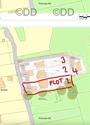 3 plots are clear, 1 with gates needs clearing (plot 1 in photo). £450,000 all 4 plots. The Bungalow opposite just sold for £750.000. Yards have been passed on lane. Viewing recommended. Sorry not doing any videos.