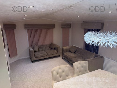 Standard features: UPVC double glazed windows and door/s, gas combi central heating, steel pantile roof, PVC cladding, lagged pipes, exterior light. Feature fireplace, dining table and chairs, gas oven & hob, stainless steel cooker hood, built in 70/30 fridge freezer. Domestic interior doors, foldout bed to lounge sofa, vaulted ceiling throughout, thermostatic shower mixer.